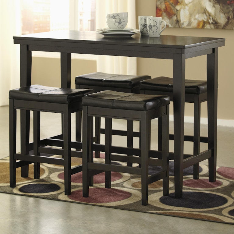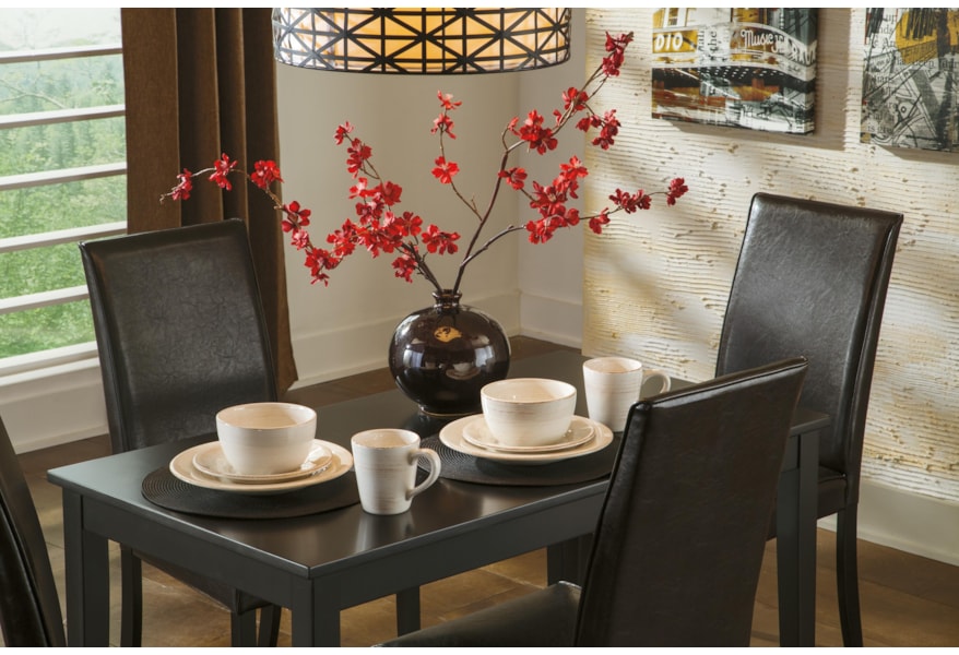 Signature Design By Ashley Furniture Is A Leading Manufacturer Of Home Furnishings Home Decor Accessories And Rugs. Kimonte Dark Brown Rectangular Dining Room Table 24W x 45D x 2975H 400 lbs The straight-line contemporary design of the Kimonte dining collection features a dark brown finish coating the sleek table style along with a choice of ivory or brown color faux leather upholstered bar stool seat cushions to help enhance the look and feel of your dining room decor.